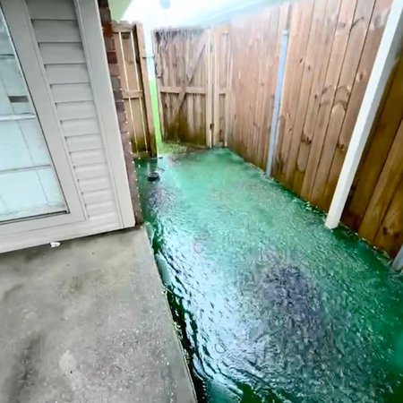 Water pooling near the foundation after a heavy rain, required a drainage solution to redirect runoff away from the home.